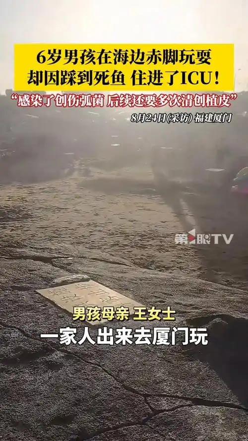 8月23日,有网友发视频称,暑假带孩子到厦门沙滩游玩,孩子不慎踩到一条死鱼,脚被鱼刺扎到,第二天早上脚开始出现刺痛感、红肿,然后开始高烧、呕吐、昏迷紧急送医,进了ICU……