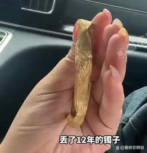 【#这花生地含金量不是一般高#】#老人丢金镯12年后花生地找到# 10月5日(采访时间),河北唐山,当事人赵女士介绍,12年前姥姥帮自己家收花生的时候,弄丢了30多克的金镯子,找了很多次都没有找到。后来这块地给亲戚家种,今年亲戚在收花生的时候,意外找到了姥姥丢失的金镯子,家人都觉得缘分很奇妙。