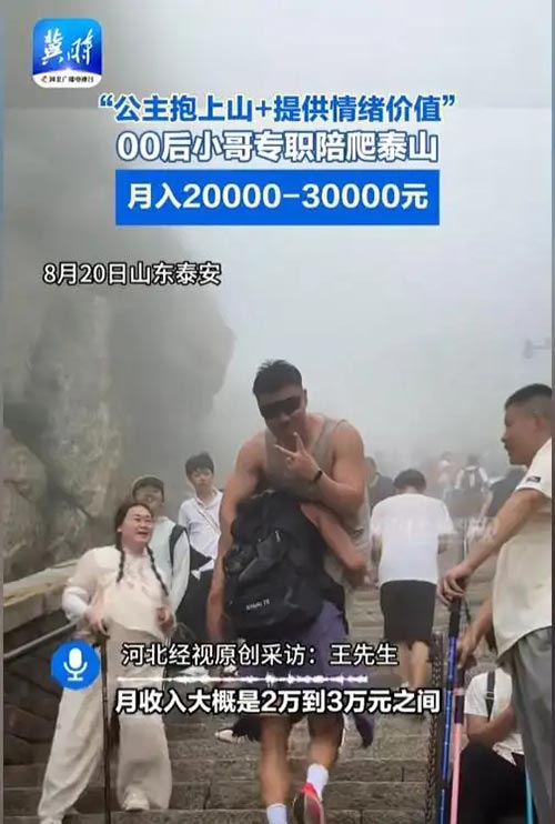 “团队有小伙伴参加了泰山国际登山赛,完赛成绩为1小时20分钟左右。”刘先生说,陪爬行业虽然门槛比较低,但实际上对从业者有一定的要求。他介绍,一些从事陪爬的人员不掌握专业能力,致使顾客事后在网上发“避雷”帖吐槽,例如有人没有给顾客提供情绪价值,有人甚至半路坐地起价,乃至半路把顾客丢掉。刘先生强调,对陪爬人员来说,除了体能上的要求,“最主要的是,必须要有好的服务态度”。因此,如果有人有意加入他所在的团队,他会与其见一面。他说,见面“相当于面试,问问专业知识,考察靠不靠谱”,不接收完全的新手。