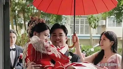 据新郎盛先生透露,他们七八岁时就已认识,从小在相近的环境中成长,熟悉彼此的生活点滴。随着时间推移,两人感情逐渐升温,顺理成章地走到了一起。婚礼当天,接亲队伍省去了长途奔波,直接从新郎家出发,穿过马路就来到新娘家,简单而温馨。