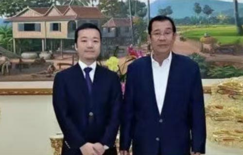 陈志为福建连江人,陈志跑到柬埔寨成立“太子集团”并发展壮大,图片可以看到太子集团控股创办人陈志被时任柬埔寨首相洪森(右)授予奥克纳勋衔后,与洪森合影。