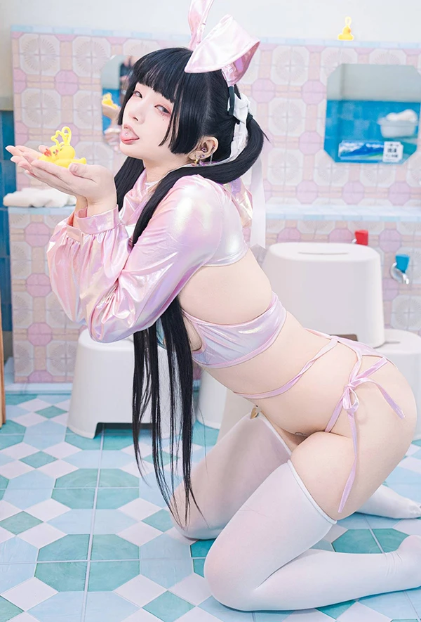 福利姬落落Raku_澡堂里紫薇 粉红小白兔