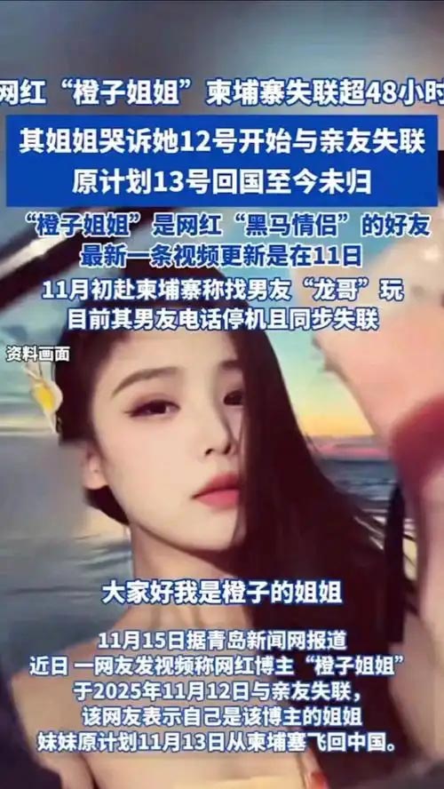 2025年11月15日,中国抖音平台上一则紧急寻人启事牵动数万网友的心——拥有11万粉丝的网红“橙子姐姐”在柬埔寨西哈努克港失联已超48小时。截至发稿前,这位以分享生活日常为主的女博主仍未有明确踪迹,其男友“龙哥”同步失联,引发多方猜测与担忧。这场看似普通的海外旅行意外,却因柬埔寨特殊的治安环境与网络时代的“信息盲区”,演变成一场跨国迷局。