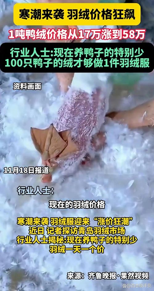 鸭绒价格暴涨240%,羽绒服产业迎来严峻考验
