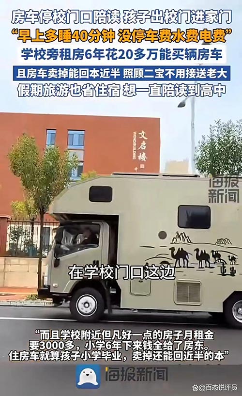 对于房车陪读的花费,这对夫妻认为是值得的投资。"房车可以长期使用,比起在学校附近买房或长期租房,其实更经济实惠。更重要的是,这段陪伴的时光是无价的。"