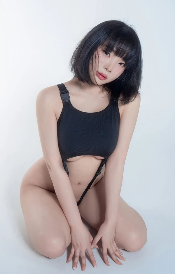 高颜值女神姜仁卿黑色小背心带带无圣光美图