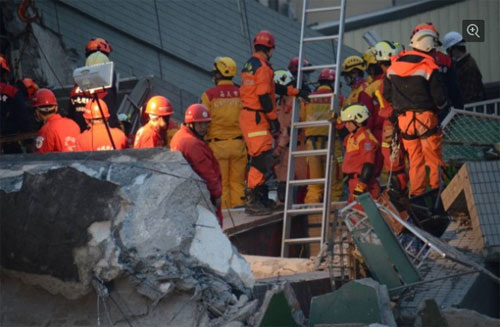 6日凌晨3时57分,台湾南部发生6.7级地震,导致楼龄20多年的维冠金龙大楼自西向东倒下,大量人员被埋。台南市消防局的数据显示,截至7日23时,搜救人员已在这栋16层的大楼内发现32名遇难者。台湾灾害应变中心的最新数据显示,目前楼内还有119人失联待寻。