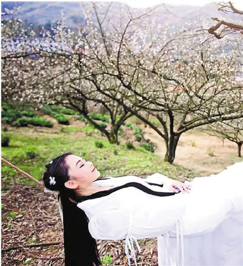 (原标题:27岁镇团委书记自费拍写真 扮小龙女为当地梅花“代言”)