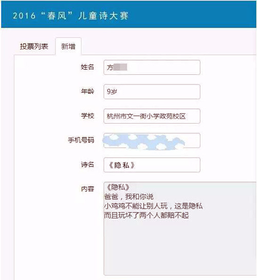 原标题:杭州小学生把父亲私处写进诗里 网友称毁三观