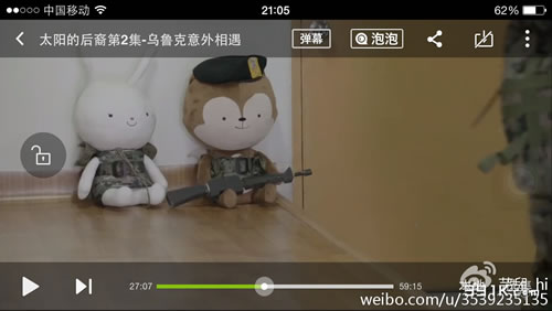 其实,这2个玩偶可不是随便出现的哦,它们可是有象征意义的,白兔子是漂亮的女友,象征的是作为医生的姜暮烟(医生的白大褂),而且兔子又是一种非常机灵可爱的动物,这不就是我们的姜医生吗?棕猴子是战友,象征的身为军人的柳时镇大尉(军人经常要被太阳晒,皮肤自然是健康的棕色啦),而且在后面棕猴子带了军帽,这不更指明棕猴子象征柳大尉吗?同时,猴子又是非常“淘气”的一种动物,我们柳时镇大尉有时也很淘气哦。【我没有任何说咱们柳时镇大尉和姜暮烟医生是猴子和兔子的意思哦,只是说象征,象征】