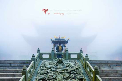 在厚厚雾气所笼罩的梵净山上,人来于此,仿佛矗立于云端,面对隐隐约约才能看见的雄伟大殿,你剩下的恐怕只有虔诚了。