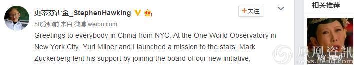 原标题:霍金今早发了条微博,让中国网友都懵逼了…(图)