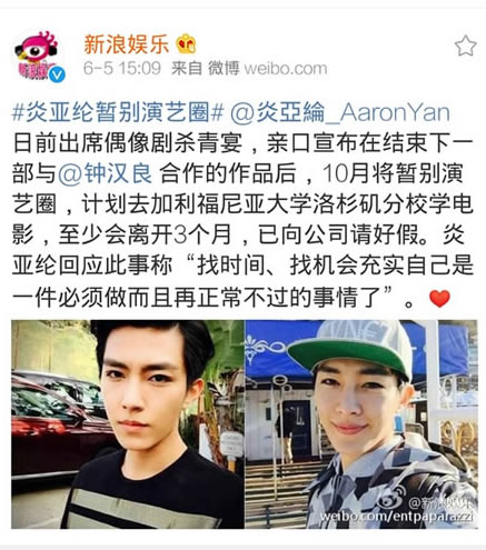 炎亚纶暂别演艺圈