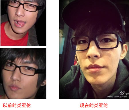 2012年9月飞轮海成员汪东城自曝炎亚纶曾整过容,让兄弟情义爆发危机。近年来,炎亚纶越来越帅,有传他曾整容,通过前后期照片对比,怀疑他炎亚轮做了双眼皮、鼻子注射增高、瘦脸针等整形手术。有网友在网上曝光了一组炎亚纶整容前后的照片。从照片中看出细微的变化。