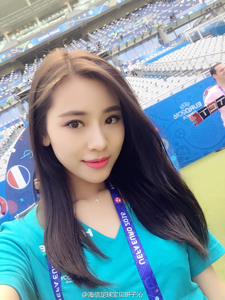 2016欧洲杯海信足球宝贝妍子沁,凭借出众的外表一直活跃在时尚界。她是2013CJ盛大展台500万钻石宝贝,史上身价最贵SG,更有网友评价子沁是韩彩英,宋慧乔的翻版。