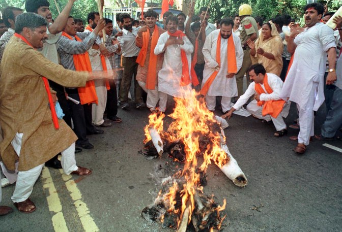 “湿婆军”焚烧巴基斯坦歌手人偶及巴基斯坦国旗