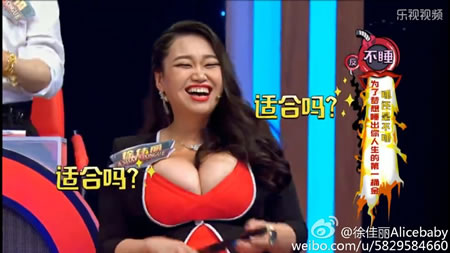 事实上,徐佳丽2012年还上过《爱情连连看》,最终还跟一位IT男甜蜜牵手成功,估计那位IT男交到爆乳身材的徐佳丽一定很幸福。徐佳丽2012年跟IT男牵手成功时,节目资料显示徐佳丽是27岁,这回又参加《奶奶说》约莫年龄也有30岁以上,不知道是不是沉寂多年后的徐佳丽想再度火一把?
