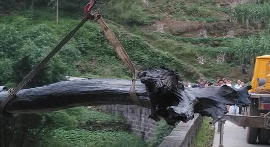 9月12日,四川省泸州市叙永县两河镇政府接到群众举报称,该镇双狮村有村民在河道内挖出了“千年乌木”,接到群众举报后,该镇迅速组织公安、林业、国土等部门赶赴现场进行处置,通过对村民进行说服和劝阻,目前,出土乌木已运往当地政府实施保护。