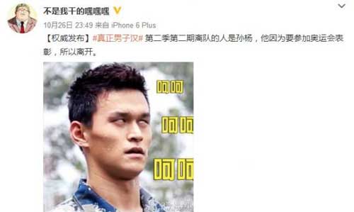 曝孙杨因参加奥运会表彰离开真男