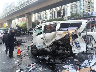 据央视公布的事发现场监控视频显示,事发时路口南北方向显示为红灯,三个车道的多辆车都停下等候,一辆黑色奥迪轿车突然从后方快速冲过来,撞上了前方多辆车,其中一辆面包车被撞侧翻。一名走在人行道上正常过马路的女行人被面包车压在车底。