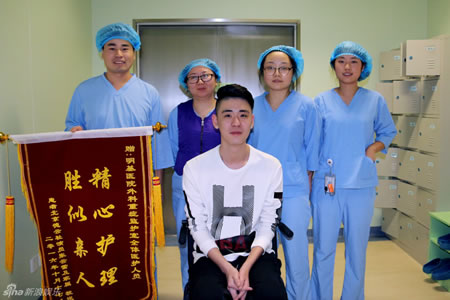 从张云雷曝光的照片来看,虽然还坐在轮椅上,但是气色大好,满面笑容,看来恢复得十分良好。张云雷在返回北京的路上还不忘发微博拍下路边美景,郭德纲忍不住转发其微博调侃:“喝点酒庆祝一下吧”