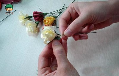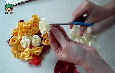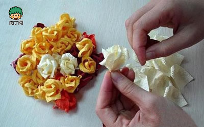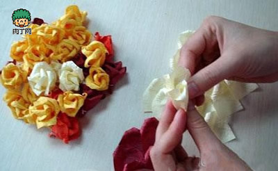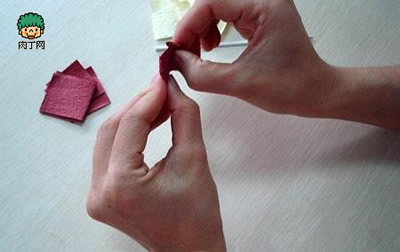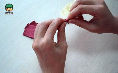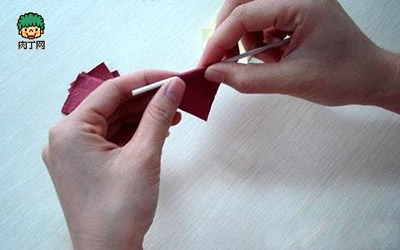 07.卷起纸片底部,卷成一圈后再接口处增加纸片,(一般6片花瓣做出的玫瑰比较好看)。