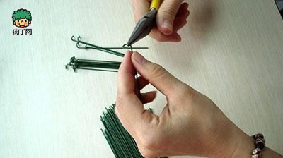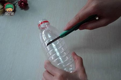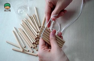 16.把绑好的竹排贴在胶瓶上,做成花瓶