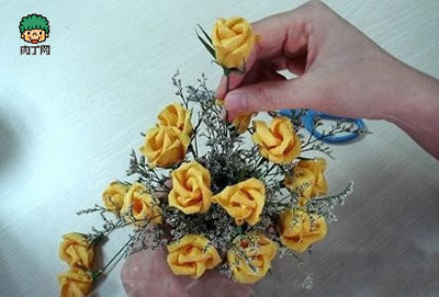17.加上一些情人草做伴,在花瓶上插上纸花