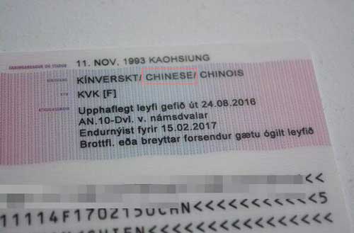据台湾东森新闻11月20日报道,这名女生此前早在脸书社群“台湾人在欧洲(Taiwanese in Europe)”发文称,自己以交换生身份在冰岛留学半年,当地政府在其居留证的“国籍”一栏写上“中国(CHINESE)”,但她“自我‘国籍’认同就是Taiwan(台湾)”,因此向冰岛移民署发出三封邮件,但通常“几天内都会回复”的冰岛移民署对邮件“已读不回”,随后她亲自前往移民署查询,移民署表示台湾不是“国家”,所以“什么都不能做”。