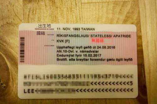 该女生在冰岛移民署、登记处与“台湾驻丹麦代表处”之间来回3个月,最终收到冰岛当局发出的一张新的居留证,在“国籍”栏写了“无国籍(STATELESS)”,并将其出生地从高雄改为台湾。该女生表示十分无奈,她称这是现实中最正确的归类,“这应该可以勉强算成功一半吧,至少‘无国籍’代表认同我主张的‘台湾不是中国的一部分领土’的陈述”。