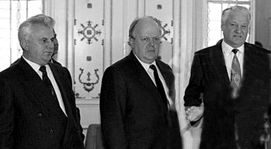 1991年12月8日,时任白俄罗斯最高苏维埃主席的舒什克维奇在别洛韦日附近的狩猎行宫接待俄罗斯总统叶利钦和乌克兰总统克拉夫丘克,并举行秘密会谈。三人签署了有关苏联解体和建立独立国家联合体的《别洛韦日协议》,宣布苏联“根据国际法和地缘政治现状”不再存在。随后到12月25日,苏联总统戈尔巴乔夫宣布辞职,苏联正式解体。