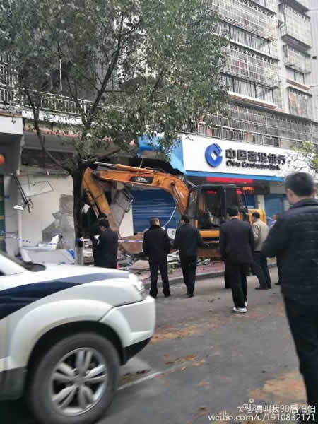 2016年12月25日5时30分许,罗某滔(男,29岁,大埔县湖寮镇人)驾驶1辆小型挖掘机将位于大埔县城内环西路富怡花园楼下的中国建设银行的4台柜员机损坏(无现金损失)。大埔警方接报后迅速出击,罗某滔被民警当场抓获,现场扣押作案使用的挖掘机和运载拖车各1辆。目前,案件正在调查中。