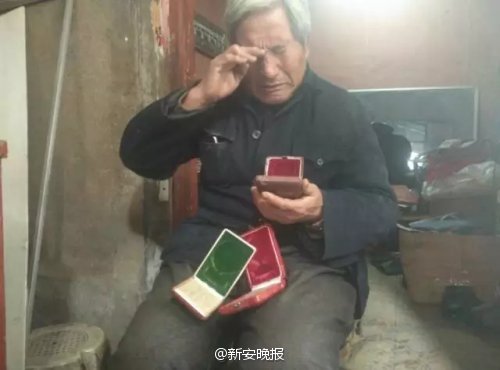 昨日,颍州晚报记者赶到孙玉安家时,发现他守在门前,满眼含泪地看着远方。“希望有人能把奖章送回来。”孙玉安说,小偷悄悄地将奖章放在他家门前也行,他不会追究对方责任。