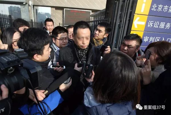 ▲周去露父亲在法院外接受媒体记者采访。新京报记者王贵彬摄