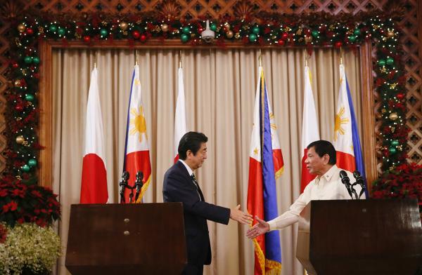当地时间2017年1月12日,菲律宾马尼拉,日本首相安倍晋三访问菲律宾,会见菲总统杜特尔特。 东方IC 图