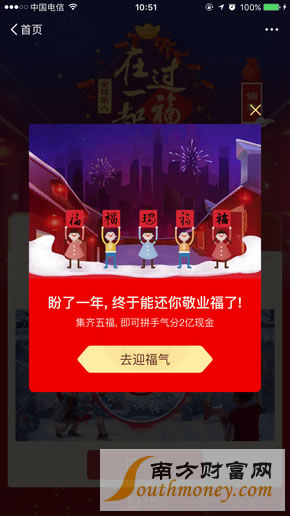 今天该活动正式启动,和去年一样,需要收集“五福”: 富强福、和谐福、友善福、爱国福和敬业福。