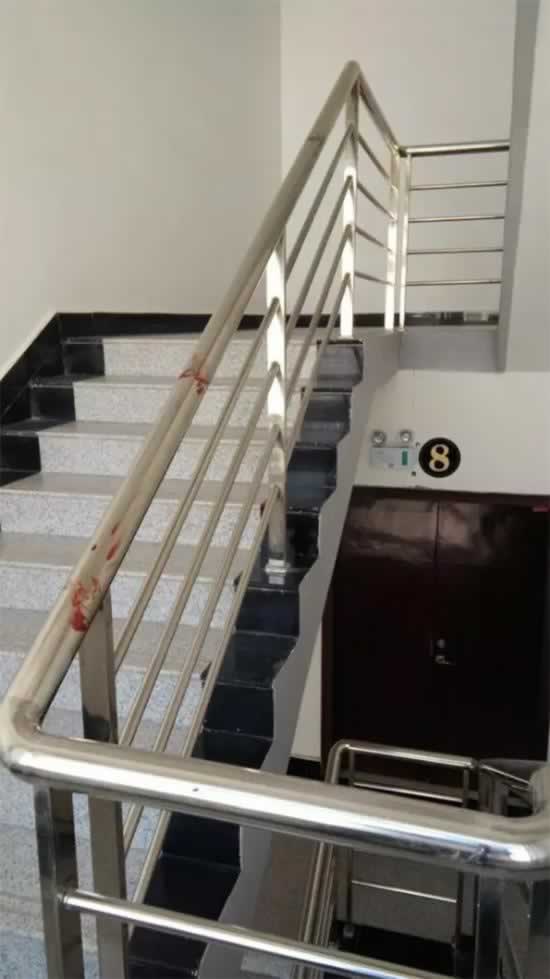 从8楼通往9楼的楼梯扶手上的血迹。图片来自网络