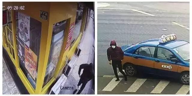 装扮也是一换再换,比如作案前后羽绒服是红色的,作案时反过来穿,变成了黑色的。
