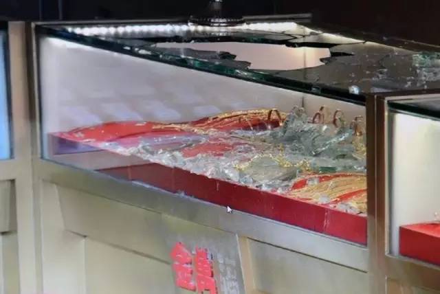 黑衣男子动作异常迅速,手伸进柜台,快速一扫,三四十条黄金项链就拽在了手里,然后转身逃跑。