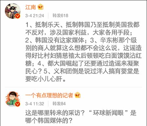 @just吐槽的小号 就指出:韩网出了条新闻,说中国为了制造反韩情绪,制作假新闻。“爱国不是无聊打嘴仗,越是敌人越要谨慎,不要出漏洞才是真。”