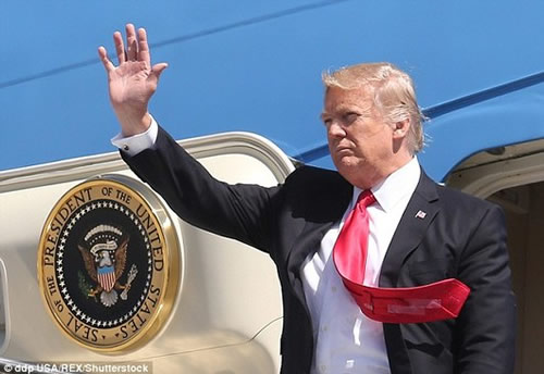 其实特朗普被抓拍到这样的窘照不止一次:1月的就职典礼,之后的空军基地访问;因为多次使用胶带并且领带太长,特朗普常被时尚界和美国网友猛批。