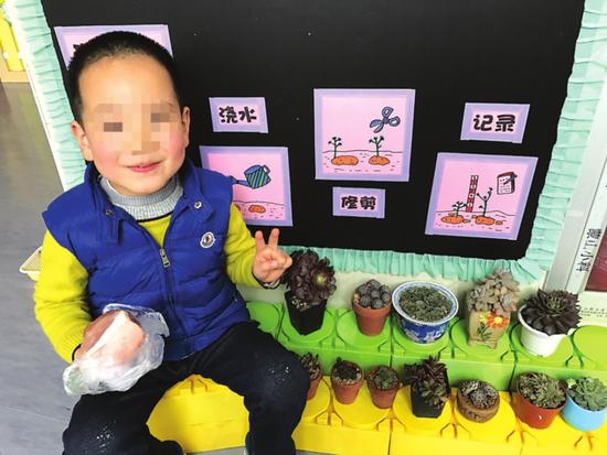 记者昨天找到了这家幼儿园,班级老师李老师告诉记者,昨天是这家幼儿园植物角重新恢复使用的日子。老师在周四的时候,跟小朋友说请大家带一些观赏用的植物,可以放到植物角给大家欣赏观察。“最近春天来了,我们班自然角需要一些植物,就跟小朋友说家里有发芽的土豆、山芋等都可以带来,还有比较好养的‘肉肉’也可以带。”李老师介绍,可能是这位叫林林的孩子没有听清,竟然真的带了一块猪肉。这位让人忍俊不禁的萌童林林发现自己闹出乌龙后做了个鬼脸。