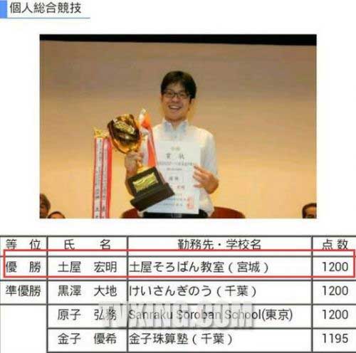 土屋宏明,男,出生于日本,擅长速算。在日本,土屋宏明有着“心算大帝”之称,他包揽了2000至2014年举办的8届“日本心算名人位决定赛”的第一名,在“日本心算选手权大会”中7次夺冠,在2012至2014年获“心算日本冠军大会”第一名,还曾获得过第2届国际心算竞技大会的世界第一。