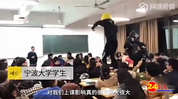 【杀马特大闹宁波大学 扰乱课堂秩序只为网络直播】近日,几名杀马特打扮的校外男子闯入宁波大学,在课堂上大肆恶搞:扮超人跳窗、站桌上跳舞、跪在老师面前喊妈……根据宁大学生自发调查,骚扰课堂的人为快手主播,id为杀马特团长。据悉,这群人并非宁波大学在校学生,在课堂上拍恶搞视频只为博点击率。