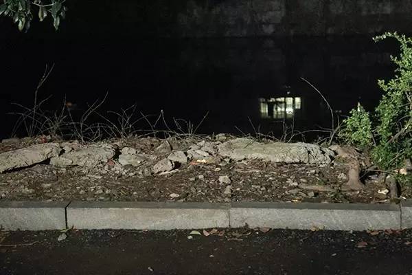 停车场靠近河边总共有10多个车位,大部分都停了车,每个车位宽度足够,但与河道之间,只有个约10厘米高的水泥台阶,晚上黑洞洞的,很难觉察。有些车位后面有树,郑师傅停的这个车位没有。