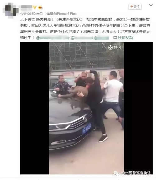 此视频为2017年3月2日13时30分许,中江公安交警大队在县城伍城路建设银行红绿灯路口开展道路交通整治发生的事件,并非泸州太伏处置现场视频。对此,@中江公安于3月3日对此事进行了通报。
