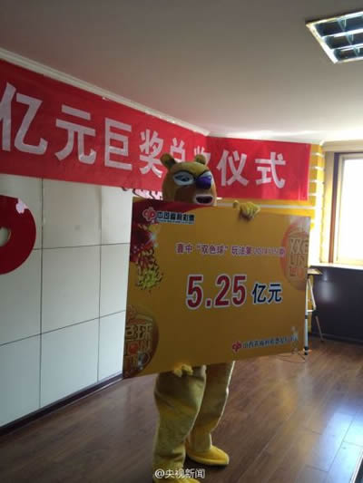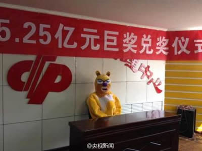 山西男子独中5.25亿双色球大奖身着卡通装现身领奖
