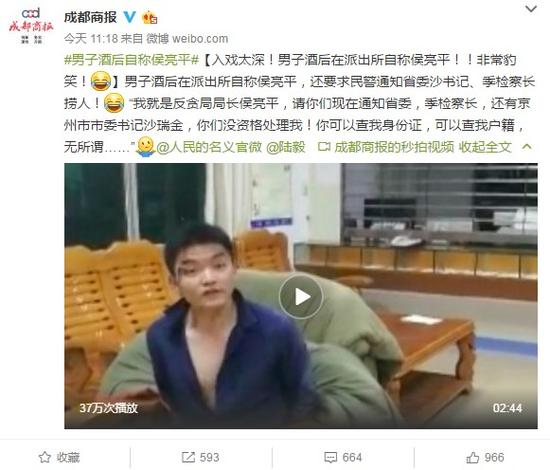 【入戏太深!男子酒后在派出所自称侯亮平!】男子酒后在派出所自称侯亮平,还要求民警通知省委沙书记、季检察长捞人!“我就是反贪局局长侯亮平,请你们现在通知省委,季检察长,还有京州市市委书记沙瑞金,你们没资格处理我!你可以查我身份证,可以查我户籍,无所谓……”