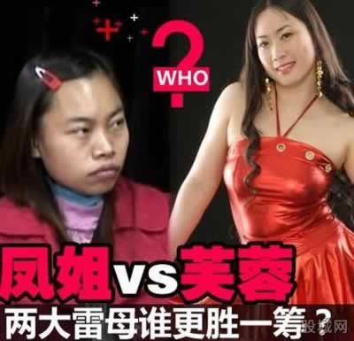 仅仅看标题,还以为凤姐和芙蓉姐两人比下面的黑木耳哪个比较黑呢!原来,两人是打嘴仗。不过呢,看她们那里黑不黑根本就没看点,还是看这两大奇葩红人打嘴仗更加过瘾。凤姐和芙蓉姐一来一往黑对方,而且还出动了文言文,文采可强了,甚至连才高八斗的唐伯虎都服了。