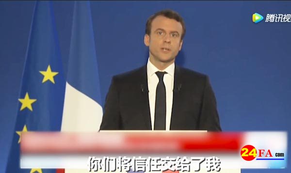 法国总统马克龙胜选演讲视频现场截图